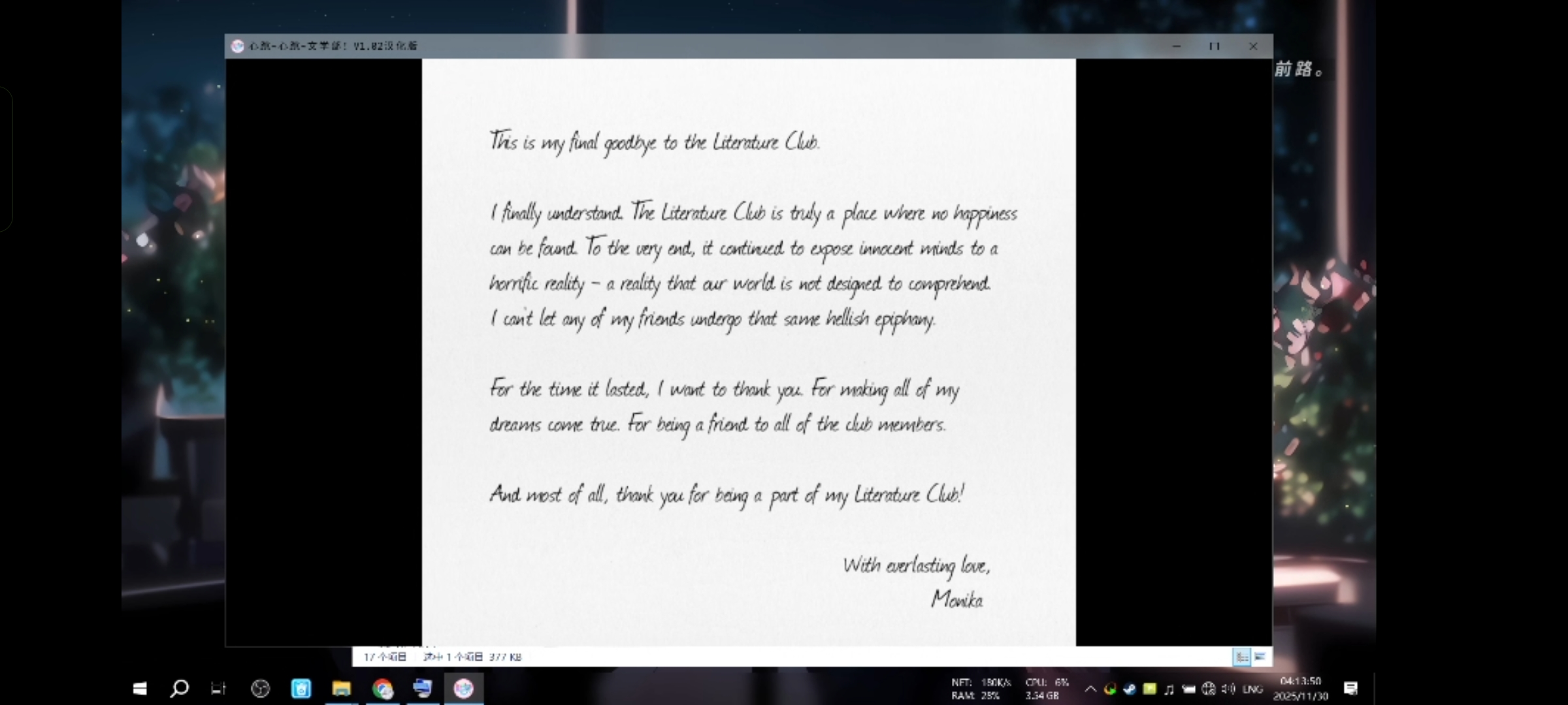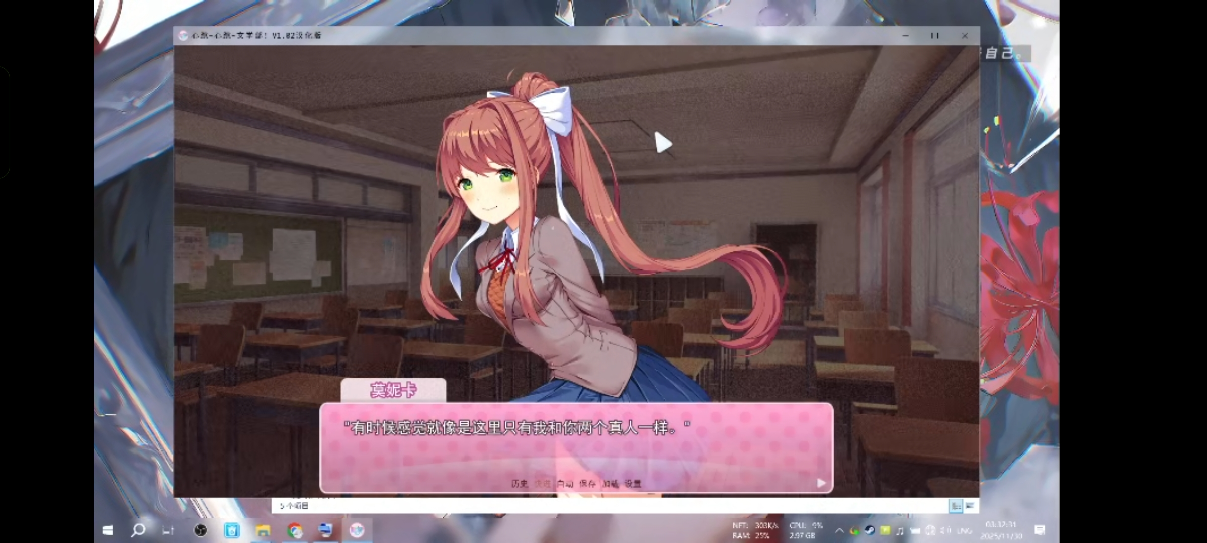 嗯,我也是勇啊,单纯以为这就是个恋爱游戏(后台还播放着米塔的音乐集),与文学部的妹砸卿卿我我,写写诗就能收获美好爱情,甚至还有特殊CG(确实有哈,后面还挺刺激)。