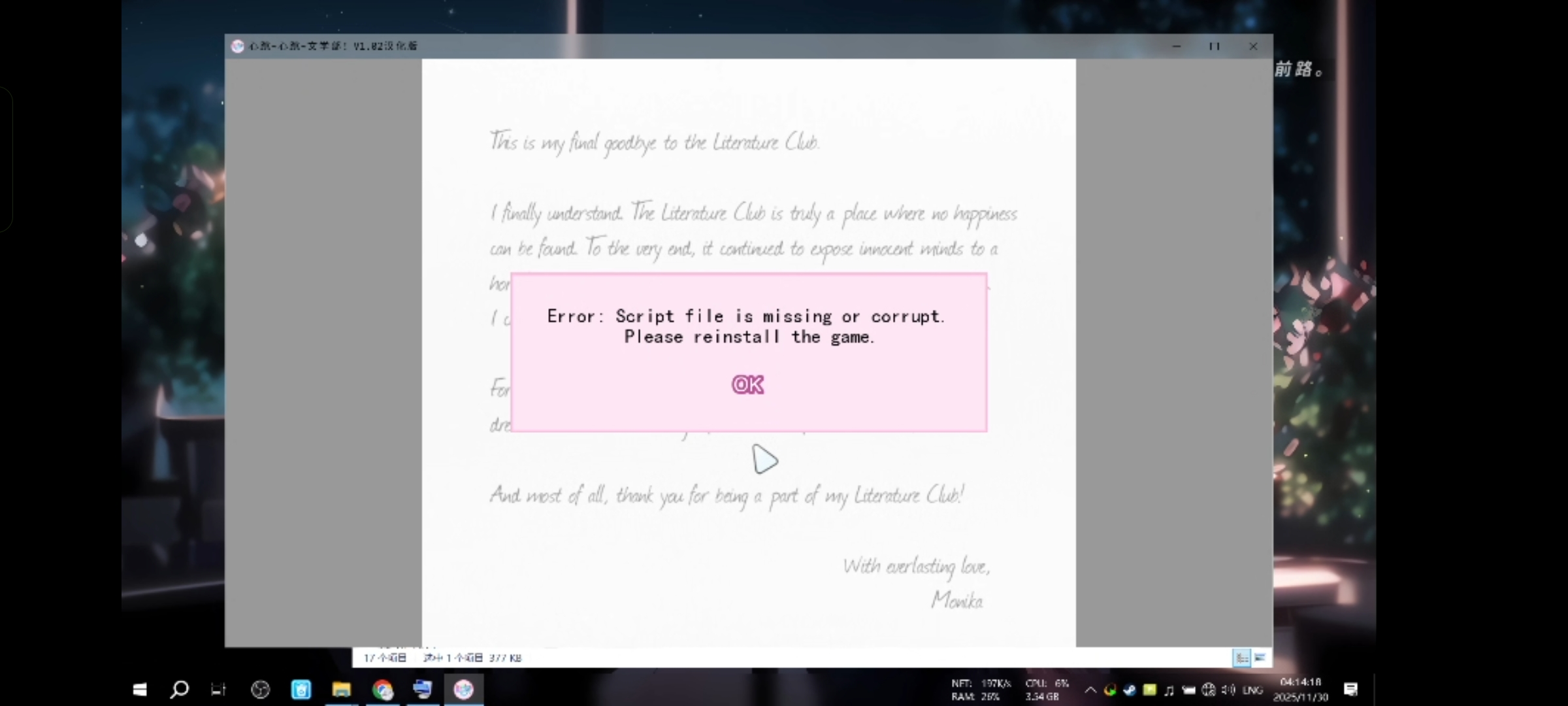 characters目录下的角色文件都在,点击游戏进入,显示的是上面这封信。