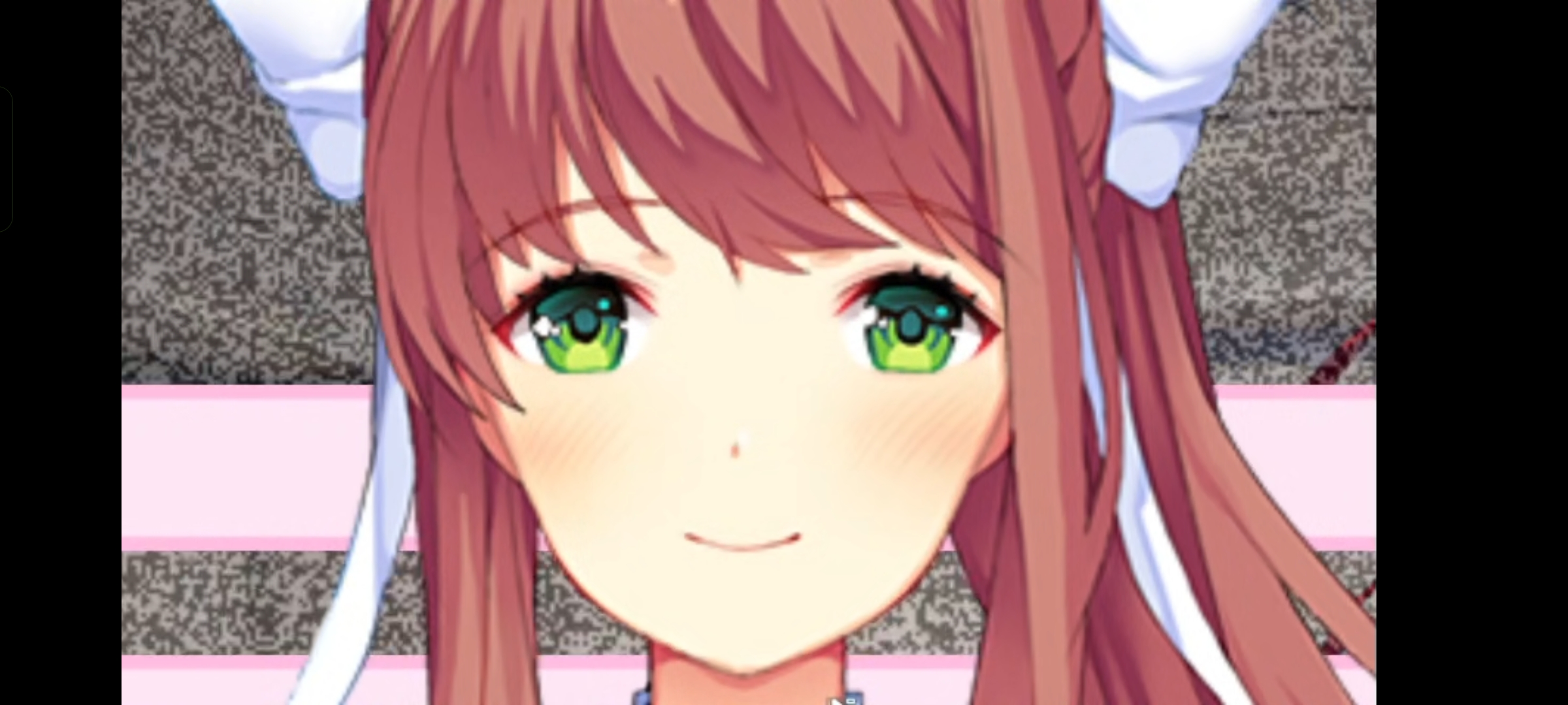 剩下的两个部员正吵得热闹,我还在选和谁交换诗呢(莫妮卡背后的两个粉色矩形就是选择框),莫妮卡一个贴脸杀——好家伙! (她真好看,不是吗)